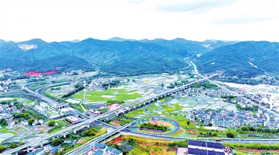 近日,信丰县西牛镇穿境而过的大广高速、赣深高铁、105国道在蓝天白云、田野村庄和青山绿水的映衬下,构成一幅美丽的生态乡村画卷。近年来,信丰县大力推进基础设施建设,加快构筑互联互通的综合交通运输网络,赣深高铁、大广高速、信雄高速等陆续建成投用,形成集城乡公路、高速公路、高速铁路为一体的现代立体交通网络新格局,为经济社会高质量发展提供坚强交通保障。特约记者李健 通讯员黄蕾 摄