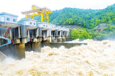 4月7日,江西赣能股份有限公司居龙潭水电厂开闸泄洪。连日来,赣州市普降中到大雨,各大中型水库蓄水量激增。居龙潭水电厂根据入库流量情况,4月7日2时防汛应急响应由三级升至二级,当天6时洪峰顺利通过大坝,洪峰流量为2600立方米/秒。