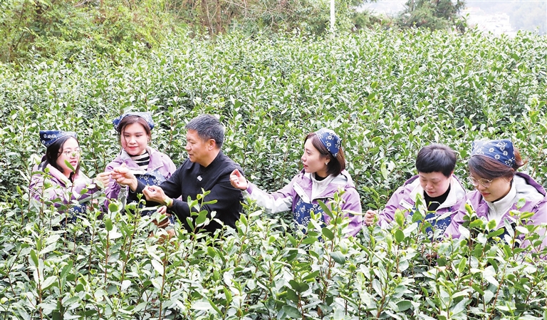 3月2日,游客组团在上犹县梅水乡园村村体验采茶、制茶乐趣。近年来,梅水乡依托自然环境好、生态资源丰富的优势,全面推进茶旅融合发展,不断丰富研学教育、茶旅体验、特色民宿等业态,走上茶旅融合发展之路。