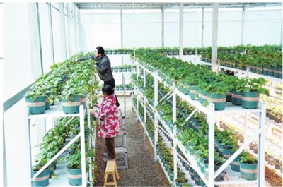 →日前,会昌县白鹅乡白草莓智能温室大棚内,工人忙着进行草莓苗打叶、摘除侧枝等管护作业。近年来,该县坚持质量兴农、科技兴农、绿色兴农,积极调整农业种植结构,大力发展数字农业,通过“公司+农户”的模式,促进农业提质增效、农民致富增收,助力乡村振兴。特约记者刘兆春 摄