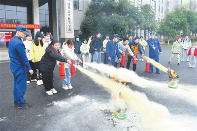 活动现场,消防员结合典型电动车起火案例和校园火灾案例警示教育片,用通俗易懂的语言讲解了日常火灾预防措施和火场逃生等知识。同时,通过“一问一答”、示范演练等形式,详细介绍了消防设施器材装备、发生火灾后如何正确报火警、如何使用灭火器以及如何快速安全逃生自救等消防安全知识。学生们踊跃发言讨论,积极参与灭火器实操演练。