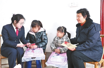 3月2日,于都县人民检察院干警前往车溪乡开展为留守儿童送温暖活动,护航未成年人健康成长。检察干警走进留守儿童家,为孩子送去法律书籍和学习用品,深入了解她们的生活现状,耐心讲解宪法和日常生活自我安全保护方面的知识。付楠萍 摄