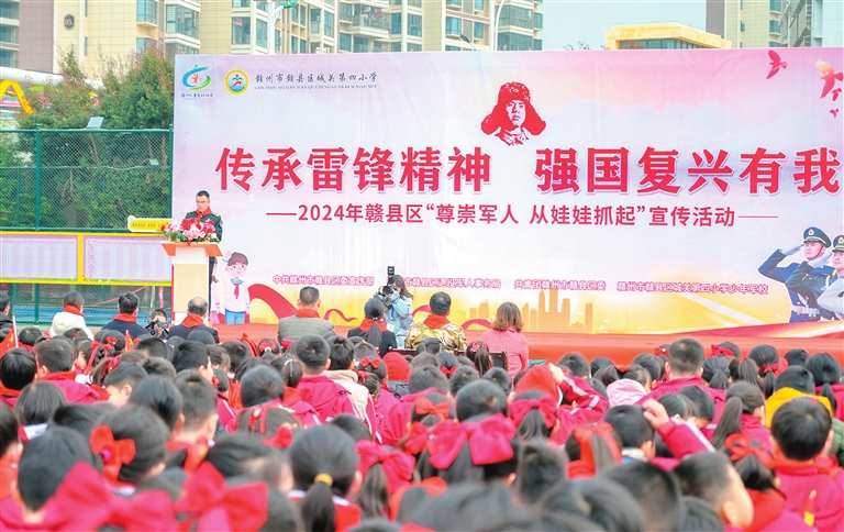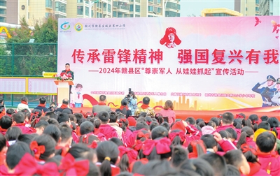 近日,赣县区开展现役军人进校园宣讲活动,一千余名师生聆听宣讲,感悟雷锋精神,传承红色基因。见习记者李萌 通讯员刘馨 摄