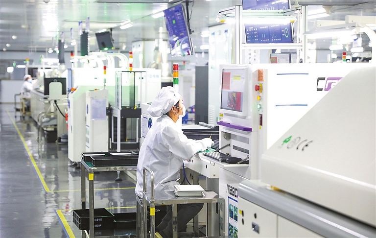 ↑近日,兴国县经开区的江西晶华微电子有限公司车间,工人在生产线上赶制订单产品。近年来,该县积极对接粤港澳大湾区,全力以赴招大引强、招新引优、招链引群,为全县经济发展注入强劲动力。 记者邹忠辉 通讯员刘娟 摄