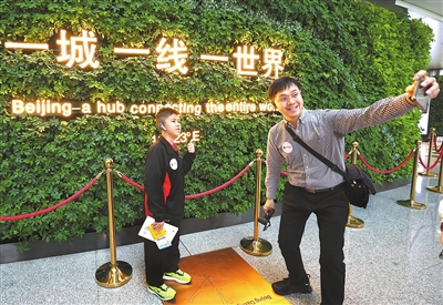 ←3月12日,来自香港的小学生与老师在大兴国际机场航站楼内合影留念。当日,由香港快运航空执飞的北京大兴往返香港航线正式开航。这条航线的开通将为京港两地往来旅客提供更多航线选择,也为京津冀和粤港澳大湾区的交流再添纽带。 新华社记者张晨霖 摄