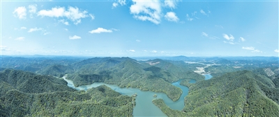 近日,蓝天白云下的信丰县金盆山国家级森林公园美不胜收。近年来,信丰县全面推行“林长制”,健全统筹监管、整体保护、综合治理体制机制,持之以恒推进森林资源提质增效,森林质量、生态功能明显提高。见习记者伍煜 通讯员刘荣东 摄