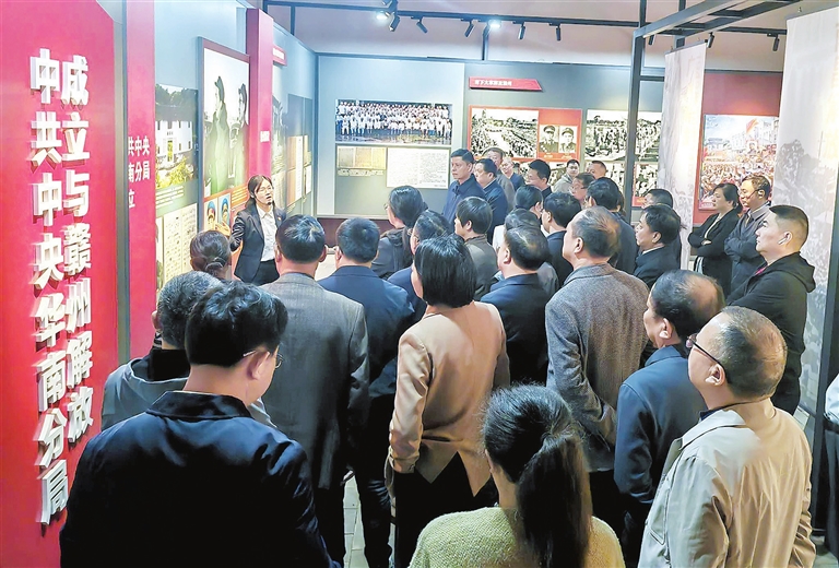 4月8日,赣州市第60期县处级领导干部进修班全体学员在中共中央华南分局扩大会议旧址开展“感悟红色精神 践行初心使命”主题党日活动。进修班自3月18日开班以来,采取专题教学、研讨式教学、体验式教学、自我教学等形式多样的教学形式,让全体学员在两个月的学习培训期间“充满电”。 记者邓海明 通讯员欧阳春香 巫锡文 摄
