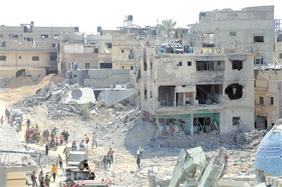 4月8日,在加沙地带南部城市汗尤尼斯,人们在以军撤离后返回家园。