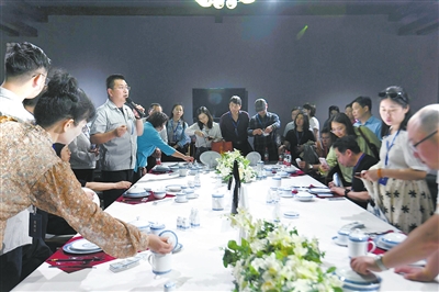 4月15日至16日,由江西省报业协会、中共景德镇市委宣传部联合主办,景德镇市融媒体中心、景德镇新闻传媒集团承办的2024“媒景共融 如瓷美好”合作交流暨“百家媒体看瓷都”采风活动在景德镇举行。图为嘉宾和记者们在国瓷馆观赏精美的国礼瓷国宴瓷。记者钟雅欢 摄
