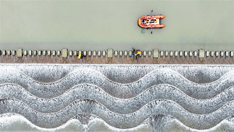 四月十六日,宁都县黄陂镇山堂村黄陂河段,工作人员正在巡河护水,清理河面漂浮物。近年来,宁都县全面落实河长制,通过实施水资源保护、巡查保洁、水环境治理、水生态修复等行动,以河长制促进“河长治”,全力打造河畅、水清、岸绿、景美的水生态环境。 特约记者曾嵘峰 摄