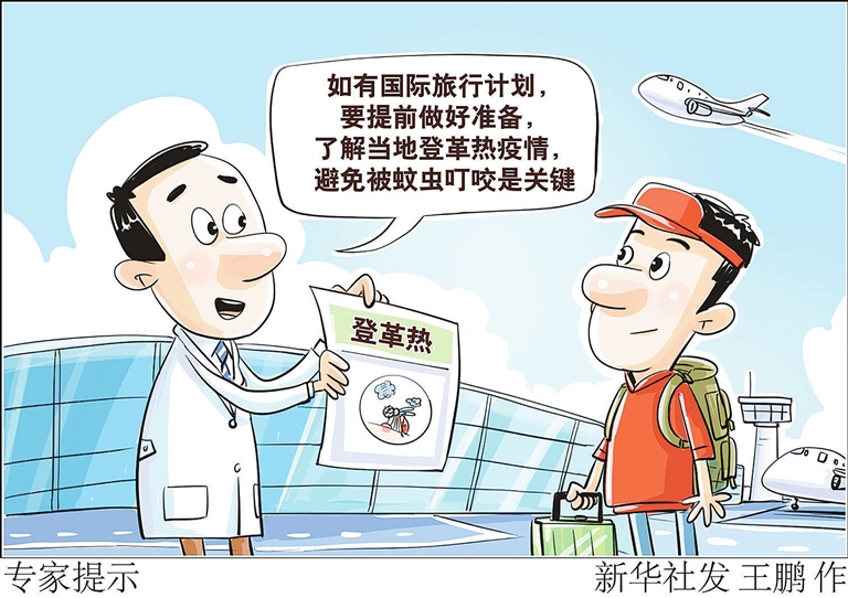 如何做好预防?专家表示,如有国际旅行计划,要提前做好准备,了解当地登革热疫情;避免被蚊虫叮咬是关键,尽量穿着宽松、浅色的长袖衣裤,身体裸露部位使用含避蚊胺、避蚊酯成分的驱蚊剂;及时清理居住地室内外积水,避免孳生蚊虫;如果在旅行期间出现可疑症状,需要及时就诊。