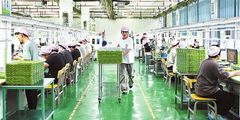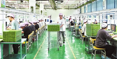 近日,位于宁都县工业园区的江西领丰电子有限公司,生产线上一派忙碌景象,2000余名员工正有条不紊地赶制订单产品。近年来,宁都县形成了以轻纺服装为首位产业,电子信息、锂电新能源为主导产业,食品加工、电气电力等为特色产业的“1+2+N”产业体系,全力推进工业经济高质量发展。 记者肖靓 通讯员李丹 摄