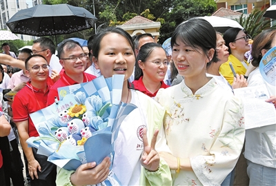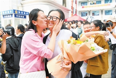 手捧鲜花、击掌鼓励、温情拥抱……记者在我市部分考点看到,不少家长和老师“花式”送考,为考生送上殷殷嘱托和暖心祝福,他们是学子们拼搏路上的坚实后盾。考生们带着父母师长的期盼,迈着坚定的步伐,自信满满走进考场。