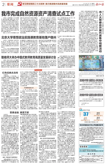 近年来,赣州各地以长征为主题的各类文化活动接连开展:原苏区所在地和长征沿线高校“新长征·再出发——红色走读”活动在赣南师范大学启动,2023中国红色旅游博览会“千车万人”重走长征路活动在于都启动,纪念长征出发90周年红色体育文化研讨会在瑞金召开,“新长征 再出发”2024赣州25公里徒步活动在赣州市中心城区热力开走……人们在活动中接受红色熏陶,感悟长征精神,汲取奋进力量。