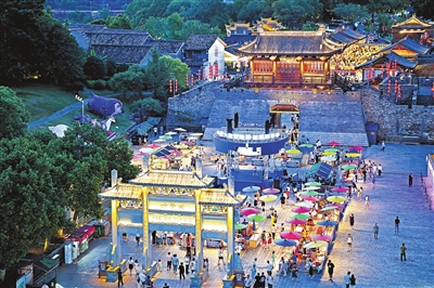 7月16日晚,赣州郁孤台历史文化街区灯火璀璨,市民和游客在这里逛夜市,感受宋城夜景。入夏以来,我市深入挖掘夜经济消费潜力,不断激活宋城夜游市场,打造新业态,释放消费新活力,进一步满足游客和市民的夜间文旅消费需求。