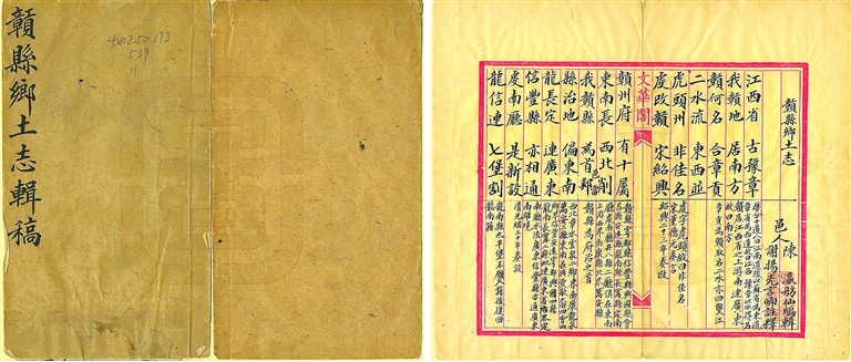 清末光绪、宣统到民初的十多年间,是乡土志书编纂最为繁盛的时期。有学者统计,清末乡土志编纂了484种,民国时期虽历经战乱,但乡土志成书也有192种,近代乡土志共计676种。目前已知赣南尚存有《赣县乡土志》《寻邬乡土志》《大庾乡土志》《南康乡土志》《兴国县乡土韵语》《石城乡土韵语杂字》六部乡土志,这些都是在那个时代背景下应运而生的。