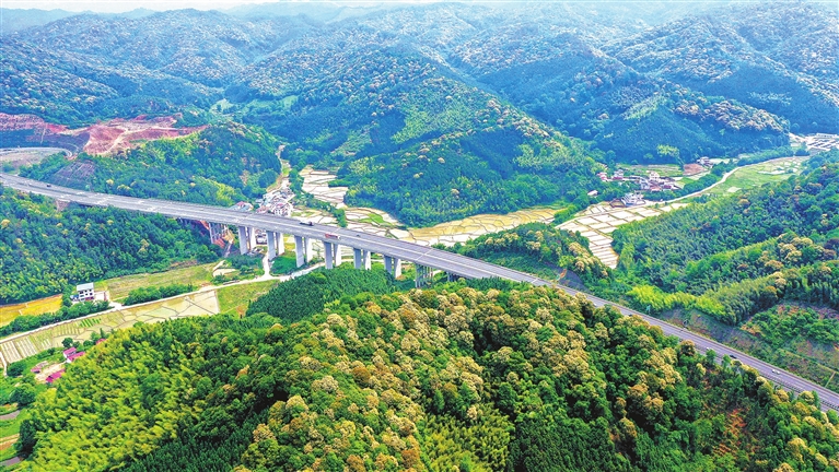近日,南龙高速公路从全南县龙下乡盛开的野栗子花丛中穿行而过,与花团锦簇的群山、广袤的田园、错落有致的村落相互映衬,勾勒出一幅层次丰富、意境悠远的夏日盛景,美得令人心醉神迷。尹其奇 摄