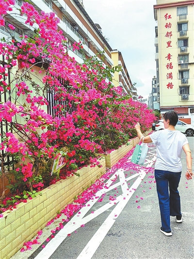 近日,章贡区洪城巷丹苑小区,居民在盛开的三角梅花墙前拍照打卡。近年来,章贡区在老旧小区改造中创新采用“拆围透绿+立体绿化”模式,释放公共空间,实施立体绿化改造,通过种植三角梅、紫藤等攀援植物,建成花廊、口袋公园等众多景观节点,形成“春有藤、夏有荫、秋有果、冬有青”的立体生态景观,实现居住环境提档升级,“安居”更“宜居”。