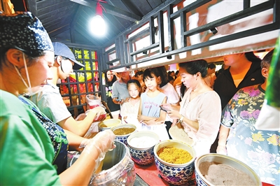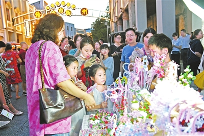 随着夜幕的降临,标准钟亮起灯光秀,阳明路便化身为步行街。街道两旁,骑楼廊柱被五光十色的霓虹灯牌精心装点,流光溢彩。骑楼二楼上,风情万种的舞蹈秀正在上演,时空仿佛在此刻悄然交错。骑楼前,80余个夜市摊位次第排开,有信丰萝卜饺、兴国米粉鱼等地道赣南风味,有奶茶、汉堡包等潮流网红小食,还有精巧别致、琳琅满目的文创手办。人们三五成群,或闲逛夜市寻觅心头好,或沉浸式欣赏流光街景,尽享这份升腾的烟火气与夏夜独有的悠游之乐。这熙攘喧腾的一幕幕,共同绘就了一幅充满活力的赣州夜间经济生动画卷。
