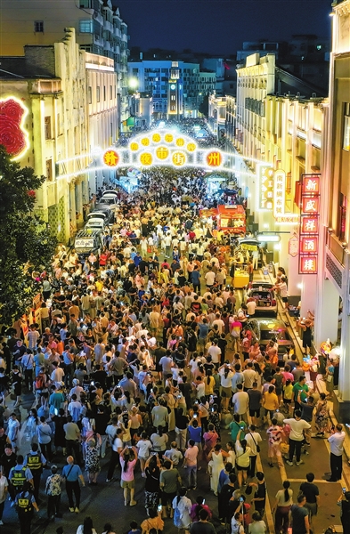 7月25日晚,赣州阳明路标准钟夜市街(坛子巷路口至标准钟路段)正式开街。现场人潮如涌,摩肩接踵,久违的热闹场景点燃沉寂多年的老街巷与老地标。熟悉的烟火气与升腾的活力在此交相辉映,奏响老城新曲。据统计,开街首日便吸引了超过3.5万名市民和游客慕名而来。