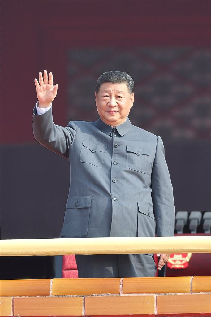 雄壮的军乐声中,习近平乘车沿着宽阔的长安街,依次检阅13个徒步方队、1个战旗方队、22个装备方队。受阅部队军容严整、意气风发,铁甲战车整齐列阵、威风凛凛。这是人民军队奋进建军百年的崭新亮相,这是中华民族捍卫世界和平的坚定宣示。