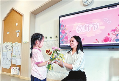 9月9日,瑞金市城东幼儿园举行“师情花意,感恩有你”赠花活动。在第41个教师节来临之际,瑞金市各学校开展形式多样的庆祝活动,向广大教师和教育工作者送上节日的祝福,营造尊师重教的浓厚氛围。胡丽微 李娜 摄