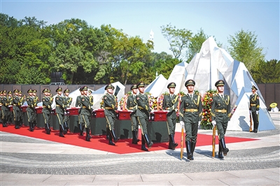 9月13日,礼兵护送志愿军烈士棺椁走向沈阳抗美援朝烈士陵园安葬地宫。