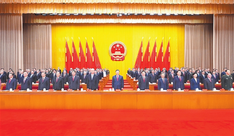 上午10时30分许,在欢快的乐曲声中,习近平等领导同志走上主席台,全场响起长时间的热烈掌声。