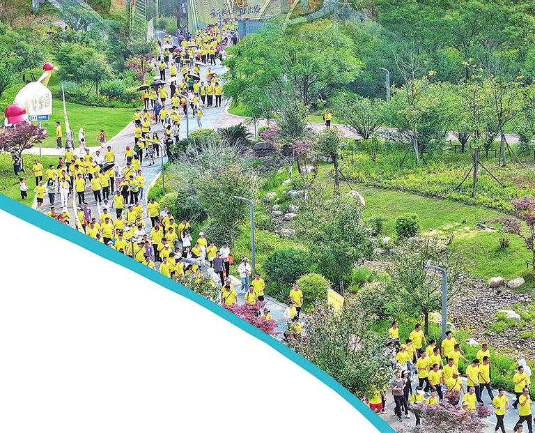 在城市空间,品质生活与诗意栖居触手可及。蓉江新区秉持“300米见绿、500米入园”的规划理念,精心打造滨江公园、新世纪(运动)公园、十里花溪公园三大主题公园。园内,月见草、绣球花、樱花、粉黛子等花卉次第绽放、轮番“上新”,成为市民游客争相打卡的“网红地”。连续两年,赣州市25公里徒步活动蓉江新区线路都吸引1.5万名爱好者参与,参与者们在欣赏旖旎风光的同时,切身感受着新区的发展变迁与自然之美。