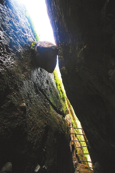 三处入口,意境各异:东侧“一线天”,狭长通幽,仰见天光如线;北口西行,可见金精湖、鹰嘴石、披发峰等奇观,东往主峰碑廊,石刻蕴藏诗意;八峰台邻接锦绣湖,泛舟水上,清风拂面,别具闲情。