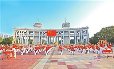 9月27日,为庆祝新中国成立76周年,来自鼓舞赣州手鼓艺术团与赣州市残联龙舞队的220名艺术爱好者齐聚赣州长征广场,以激昂的鼓点与灵动的龙舞,共同演绎歌曲《歌唱祖国》。当日,赣州市文化馆在此举办《歌唱祖国》主题活动,全体参与者同声歌唱、同频击鼓、同步起舞,深情诠释“中华民族一家亲,同心共筑中国梦”的时代主题,为新中国成立76周年献上美好祝福。记者刘青 摄